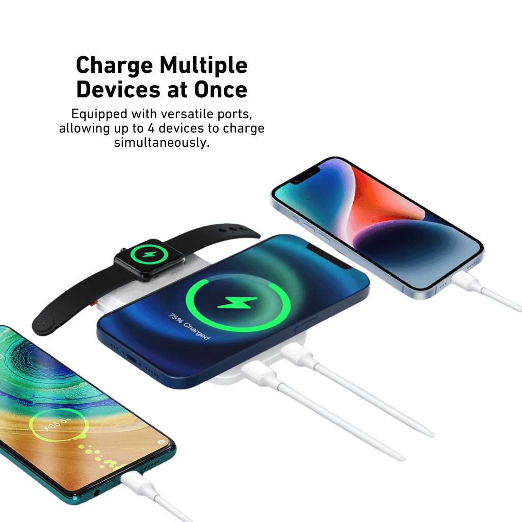 Enjoy versatile charging options with fast PD20W Type-C ports and a wireless charging pad that supports up to 15W for multiple devices simultaneously.