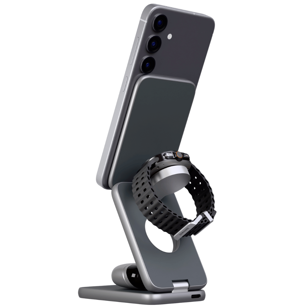 Slim foldable design fits anywhere — no clutter, no bulk. Perfect travel companion for powering your Galaxy phone, Watch, and Buds.