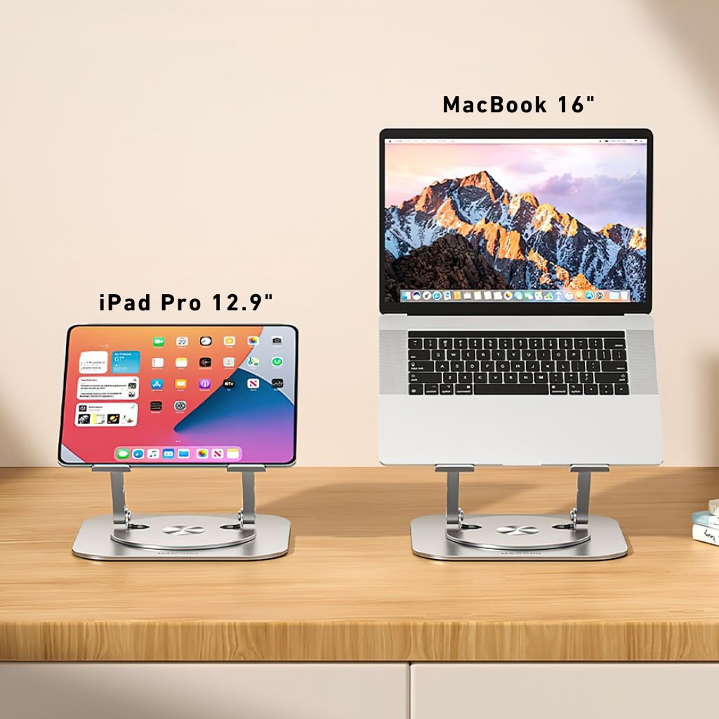 Adjust your laptop to any angle with a 360° swivel base, providing flexibility for a more ergonomic setup.