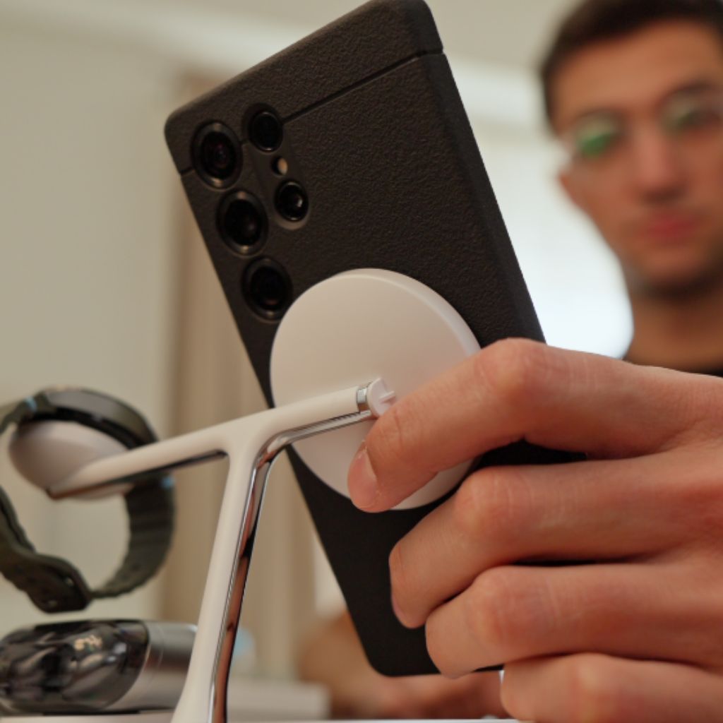 Easily power your phone, any Galaxy Watch, and wireless earbuds with smooth magnetic alignment.